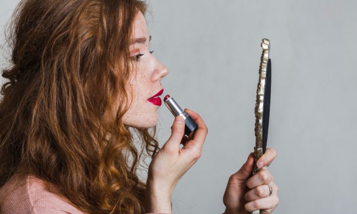 - Conturează buzele cu un creion într-o nuanță apropiată de culoarea naturală a buzelor tale pentru a le defini.